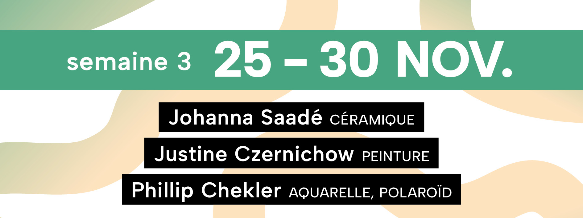 Vous m’y retrouverez la 3ème semaine, du 25 au 30 novembre avec Justine Czernichow (Peinture) et Phillip Chekler (Aquarelle et polaroïd).